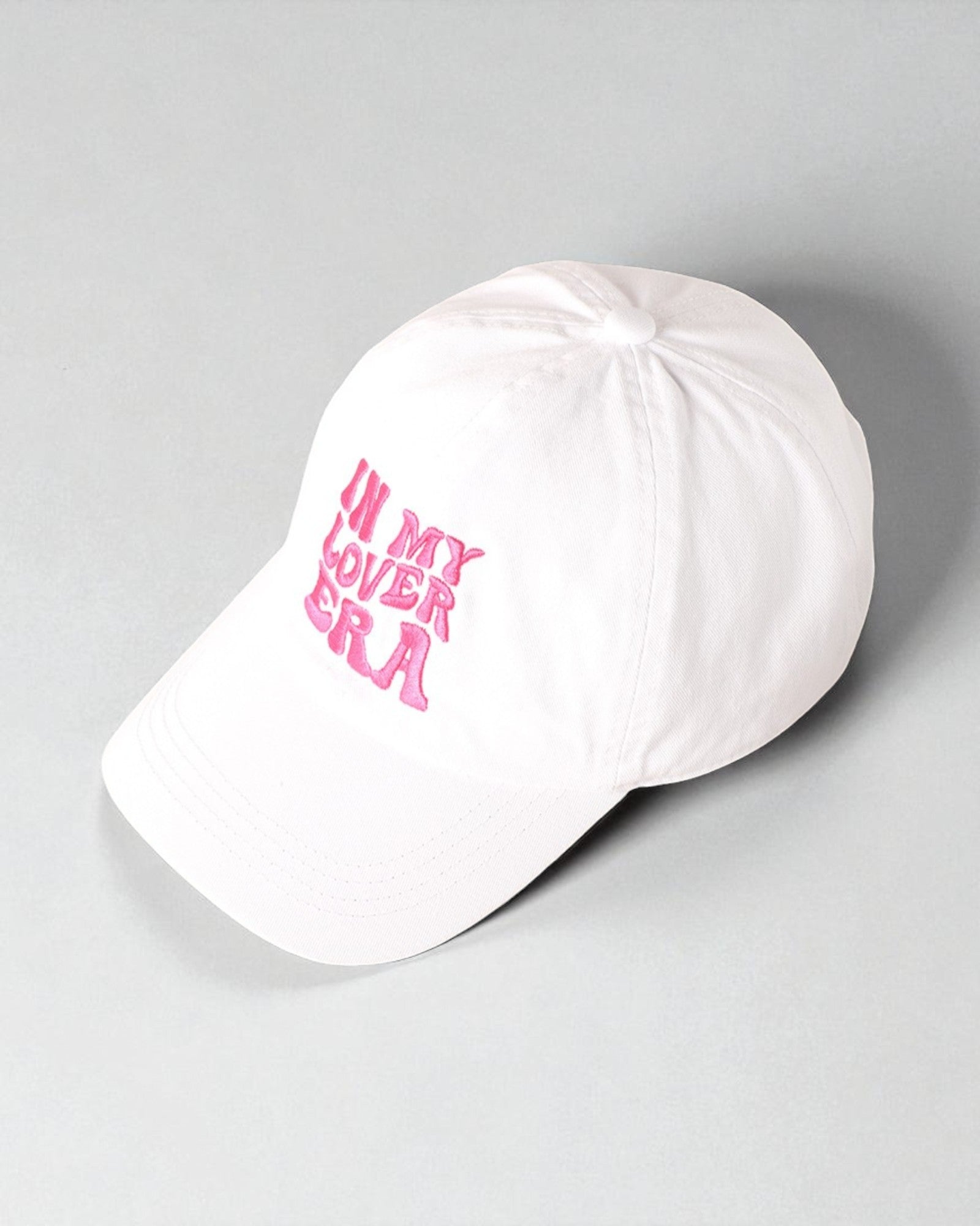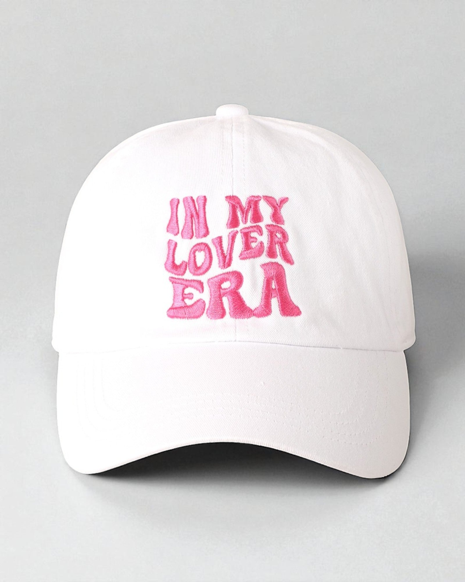 Step into your romantic chapter with this dreamy embroidered cap that says it all—“In My Lover Era.” Featuring playful retro lettering and soft cotton comfort, it’s the perfect accessory for expressing your sweet side with a splash of fun.