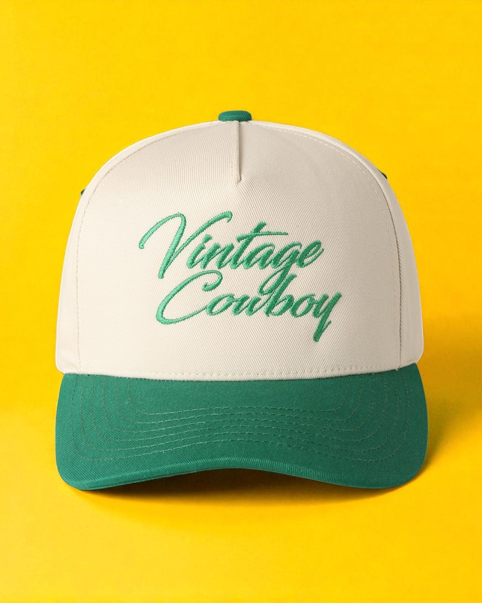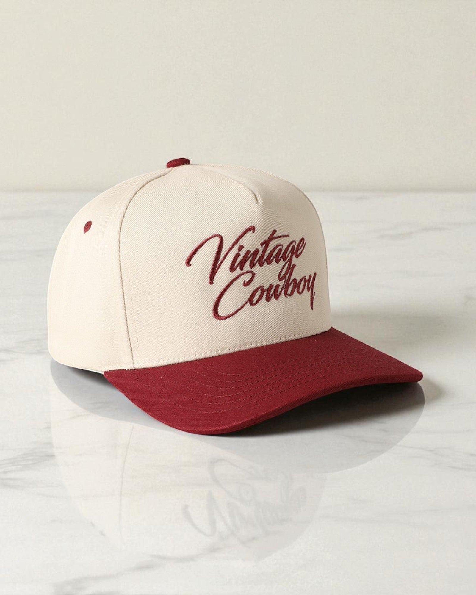 Saddle up in style with the Vintage Cowboy trucker cap in rich burgundy and cream. The retro-inspired script embroidery brings nostalgic flair, while the breathable cotton blend and curved bill offer all-day comfort. A go-to accessory for cowgirl energy, vintage aesthetics, or laid-back weekends.